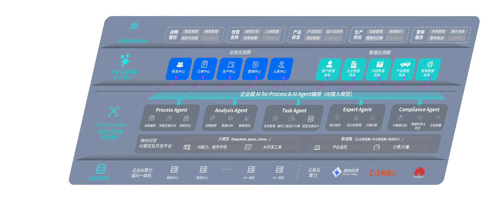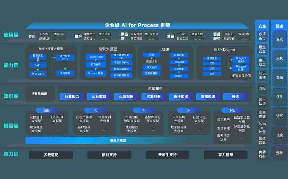 端到端的一站式AI工作空间深度融合了从企业战略规划到日常经营的全流程业务板块,,,,定向解决车企内部领域多、、、、部门多、、链条长、、场景碎片化等难题,,,支持车企快速构建以AI为核心的生产力写作体系,,,实现任务执行与AI能力的无缝集成与交互